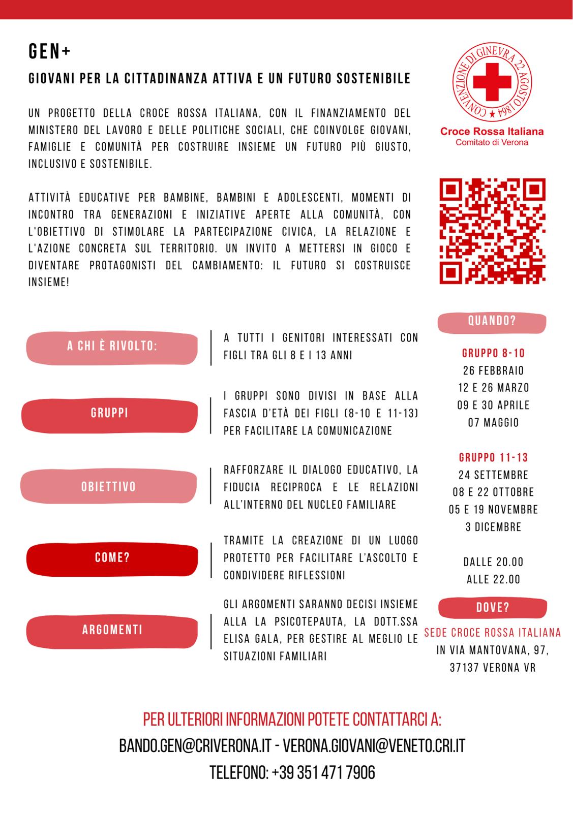 “Gen+ giovani per la cittadinanza attiva e un futuro sostenibile” è un progetto della Croce Rossa italiana con il finanziamento del ministero del lavoro e delle politiche sociali, che coinvolge giovani, famigli e comunità per costruire insieme un futuro più giusto, inclusivo e sostenibile.